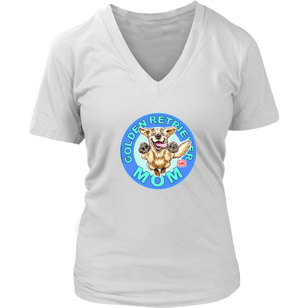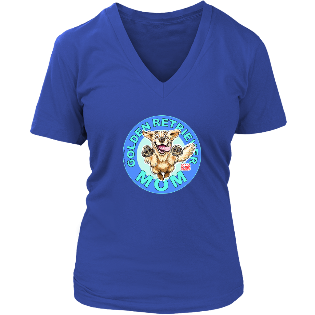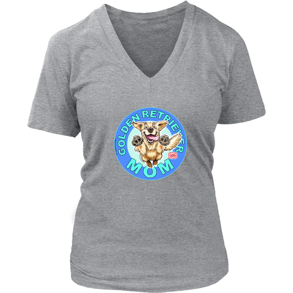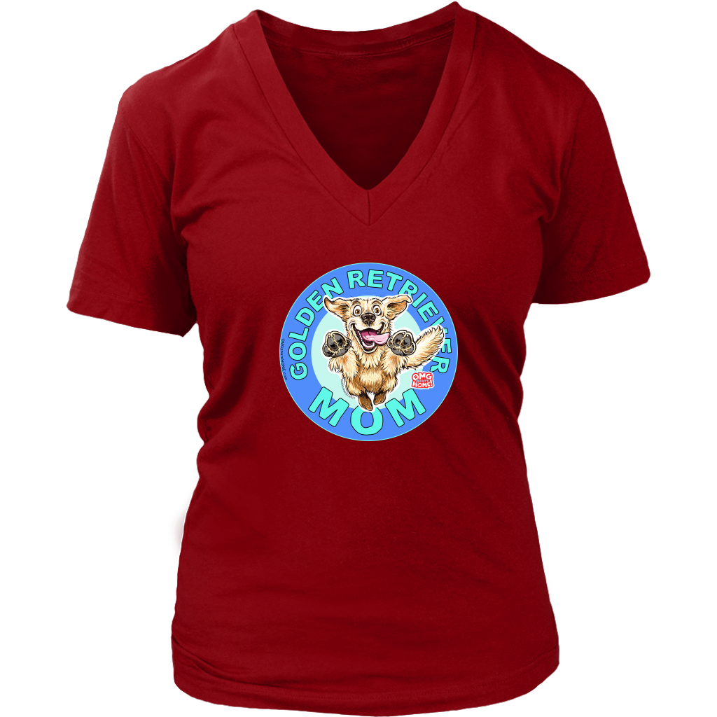 A soft and comfortable womens v-neck shirt by District featuring the original Golden Retriever Mom design by OMG You're Home.