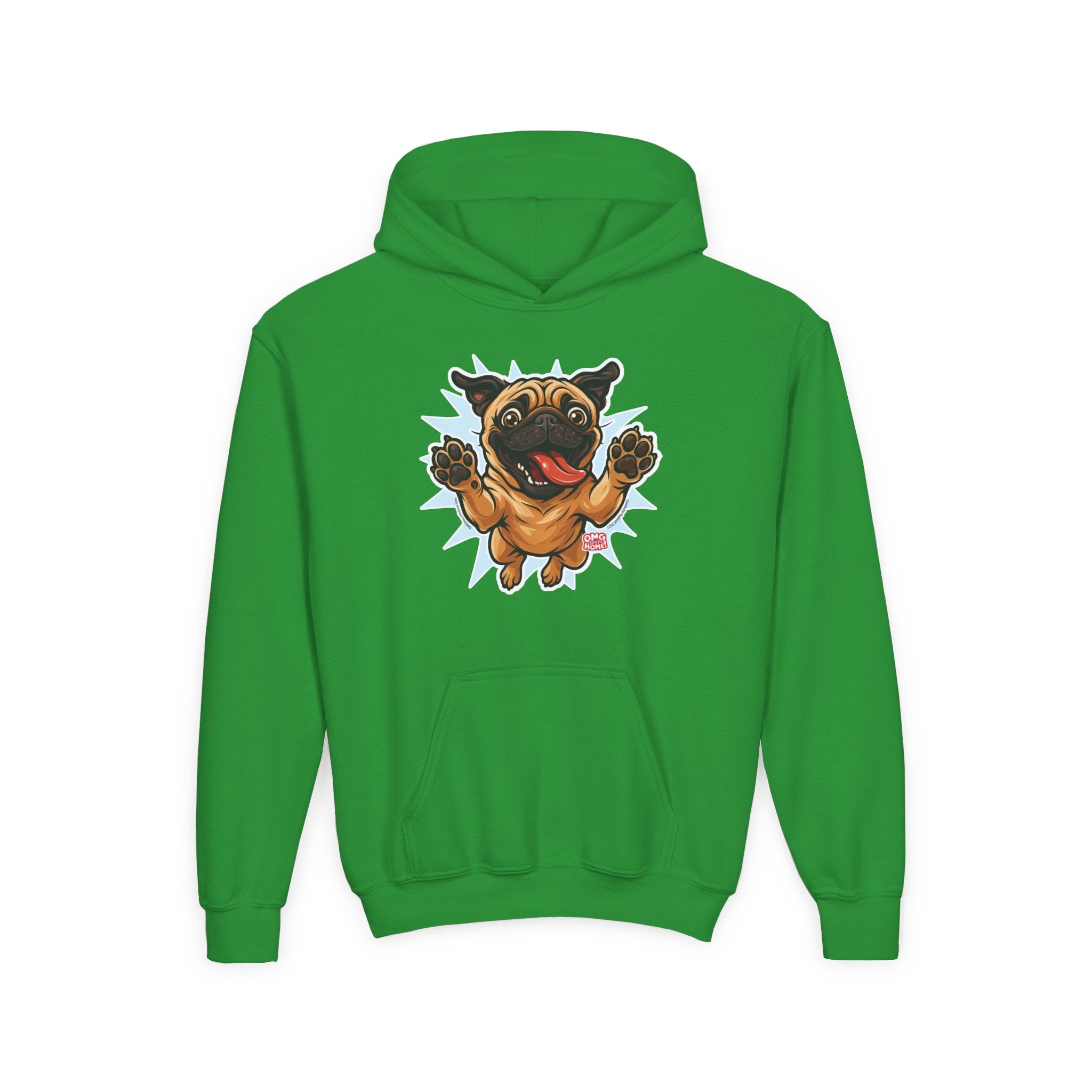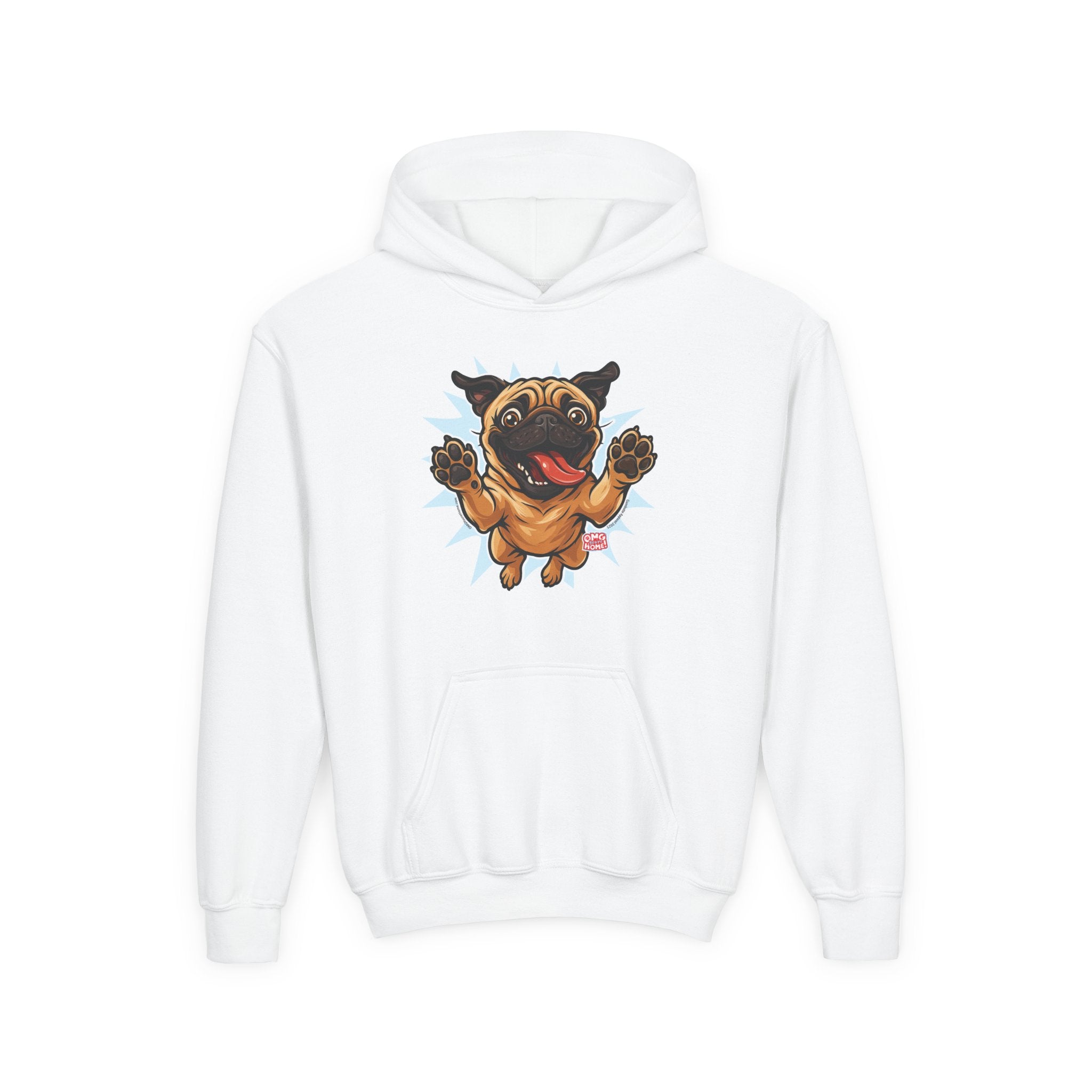 Adorable Pug Youth Hoodie with Fun Design - Perfect for Pet Lovers, Gifts for Kids, Casual Wear, Birthday Present, Dog Lover Apparel